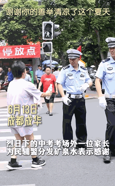 在炙热的中考考场外,当一瓶瓶清凉的矿泉水递到执勤民辅警手中时,这不仅是解渴的甘露,更是对警察工作的肯定。