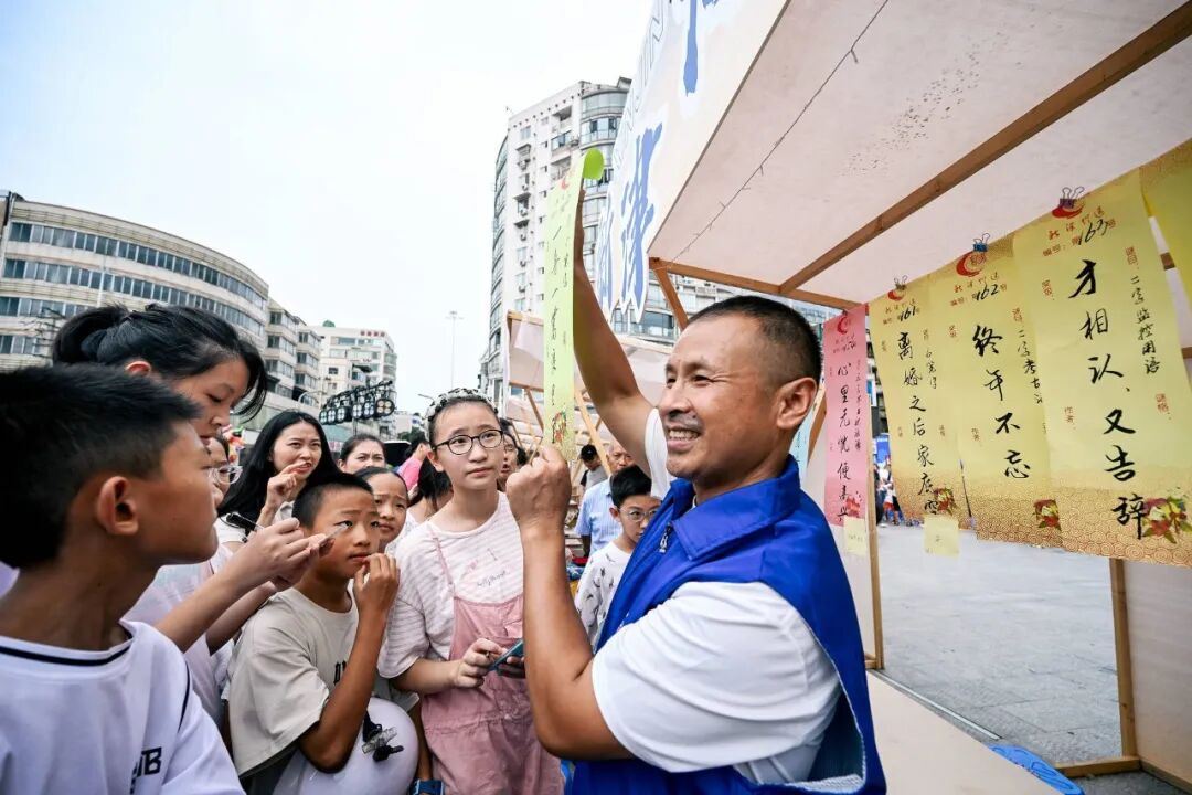 台湾蚵仔煎的焦香、非遗糖画的甜润、“美食盲盒”的惊喜……南岸美食工坊香气四溢,北岸微醺码头则是“浪漫担当”:埃塞俄比亚现磨咖啡,浓郁香气伴着爵士旋律飘向河面;调酒区摇壶翻转,创意鸡尾酒点缀夜色,让游客流连忘返。