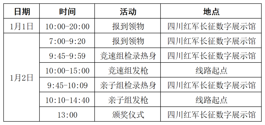 2.本活动除起终点计时点外,分别在CP设置计时点,选手必须在每个计时点完成计时,缺少任何一个计时点,成绩无效。竞速组前六名及亲子组前十名采用枪声成绩录取,其他以净计时成绩录取。