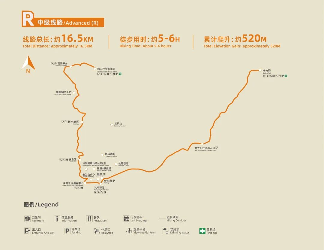 天台山越野徒步线是一条适合精英挑战的SR级线路,全长约20.6公里,累计爬升850米,垂直落差大,地形复杂。