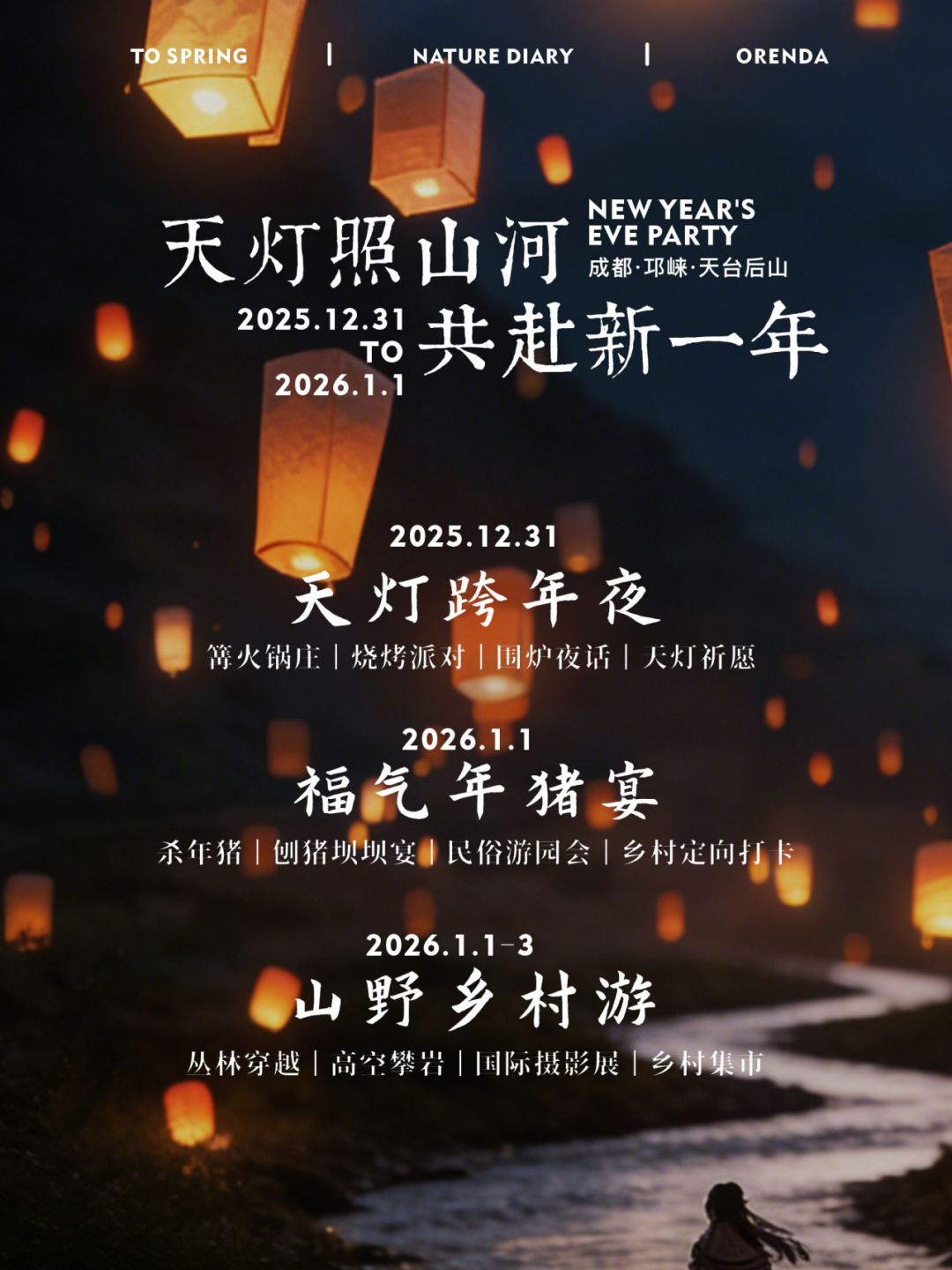 天灯跨年夜、福气年猪宴、山野乡村游,共赴新年~