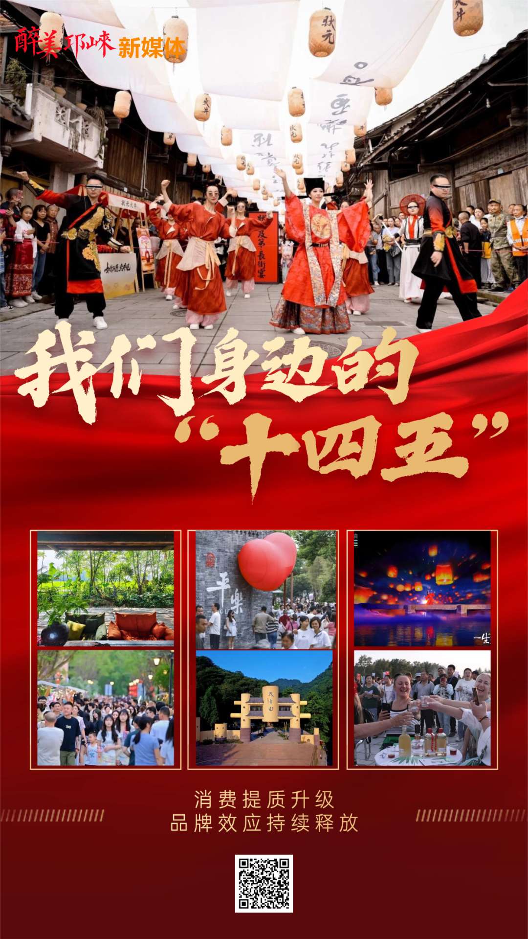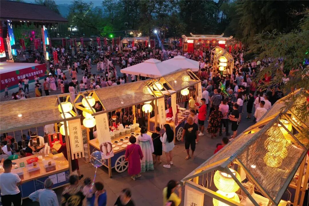 “爱在天台·月圆时”“南丝路文化旅游季”、大同镇长街宴、“一生所爱·夹关见”“如你所愿·火井见”“桑园中秋趣,团圆共欢歌”……从“点上出彩”到“面上开花”,邛崃城市消费品牌的综合效应持续释放。2025年中秋国庆大假期间,邛崃“村糖会”系列主题IP活动成功“出圈”,将酒香、文化、美食、美景、赛事与消费体验深度融合,打造农商文旅体融合的新消费场景,不仅掀起全国游客打卡热潮,更12次登上央级媒体,让“文君故里 醉美邛崃”的品牌知名度持续攀升。