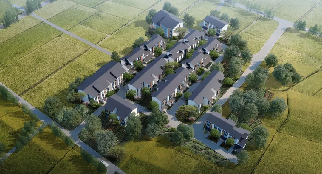 从项目效果图可见,项目竣工后,灰黑色屋顶、白色外立面的建筑群错落有致。楼栋间绿树掩映,呈现出简约现代而又温馨宜居的整体风貌,共同构成了一幅恬静和谐的宜居画卷,将进一步提升百花社区的乡村风貌,助力建设宜居宜业和美乡村。