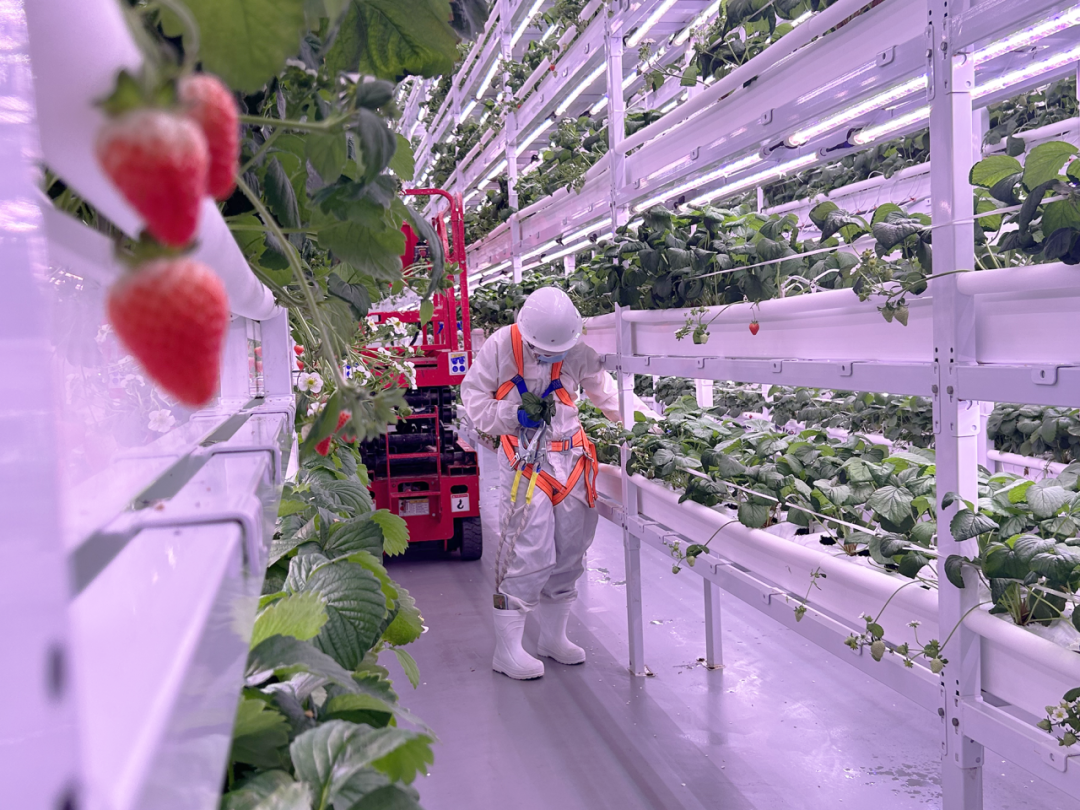 赵中莹说,车间内,草莓生长所需的水分、养分、光照等均由智能系统精确调配,二氧化碳浓度与湿度保持全程可控。同时,空气与灌溉用水经多重过滤,车间洁净度达十万级标准。