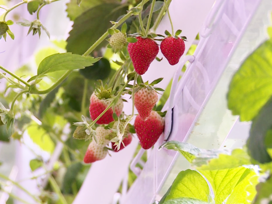 作为西南地区最大的规模化立体栽培草莓智慧工厂,该工厂总面积3400余平方米,设有5个草莓立体栽培车间。“第一批栽种的草莓现已进入持续采收期。”在中农亿享生产管理中心负责人赵中莹的介绍下,记者见到不少草莓的果子已经成熟,但仍然开着花,“在工厂里,花果同枝的现象十分常见。”