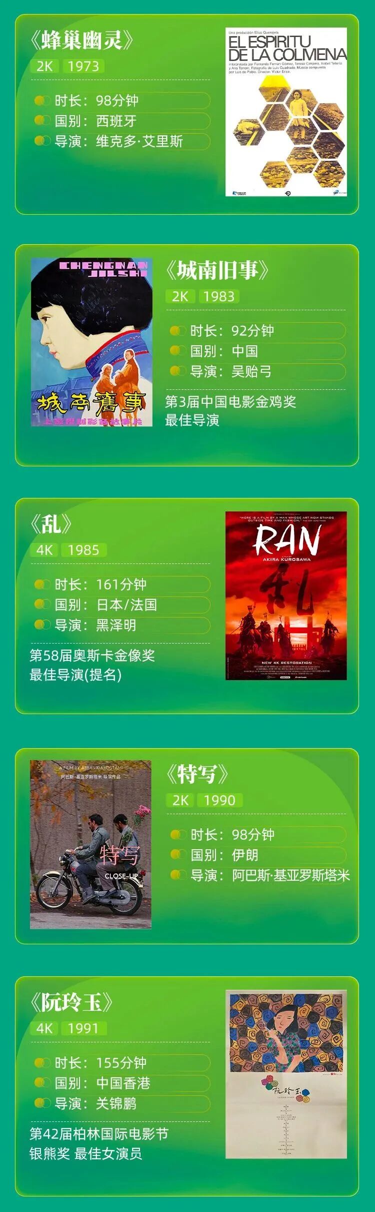 细看这次的片单,从法国新浪潮开山之作《四百击》到黑泽明史诗巅峰《乱》;从关锦鹏重构影星人生的《阮玲玉》到是枝裕和治愈人心的《步履不停》,涵盖中、法、日、德、伊朗等多国杰作,更有6部4K修复版华丽亮相大银幕,还原胶片质感的纯粹魅力,带来极致视听体验,让影迷在影院重逢那些镌刻时代印记的经典瞬间。