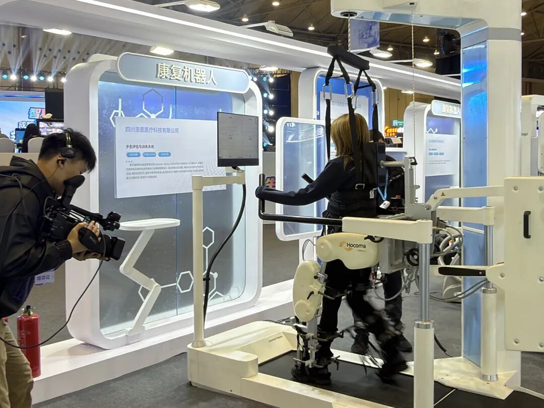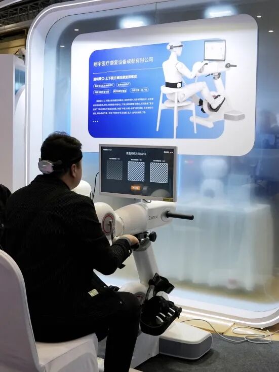 “非常有幸能与各位一同见证我们的最新研发成果。”在新品发布环节,四川浩恩医疗科技有限公司相关负责人介绍了企业新品——下肢康复机器人(Lokomat Nanos-c)。这款产品主要为因神经受损导致行走功能障碍的老年患者,提供安全有效的步行训练平台。