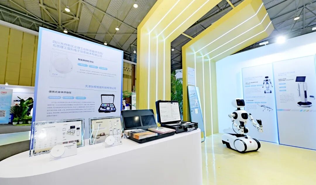 温江不仅组织8家企业22款“温江造”产品亮相,还在现场发布了具身康养帮扶机器人“含羞草1号”、脑影像机器人移动CT(XG-1000)、下肢康复机器人(Lokomat Nanos-c)等新品,并设置分会场,实景化展示“温江造”康养机器人的硬核实力。
