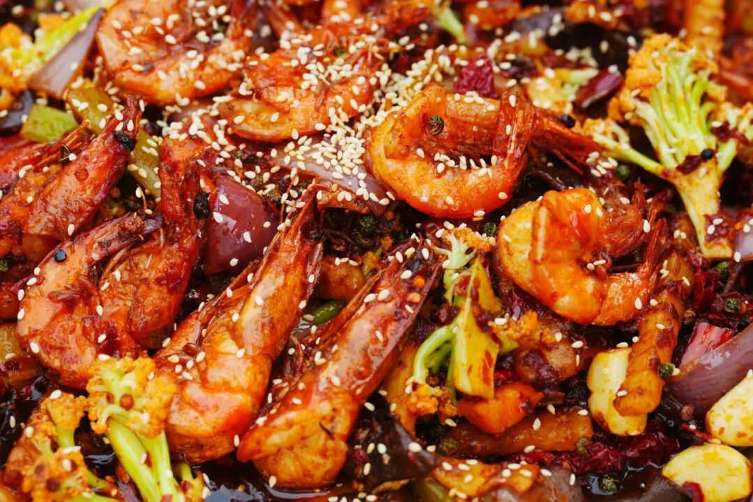 乾坤香辣盆盆虾,是川味融合海鲜的一道经典之作,由刘乾坤原创调试。灵感源自老成都经典川菜,他将海产用川味手法烹制,在甜麻基础上反复试味,最终调出独有的甜香辣口。入口麻辣,回味甘甜,虾肉Q弹紧实、鲜嫩入味,香料层次丰富,香而不燥、辣而不冲,一口下去,满嘴都是川式鲜香。