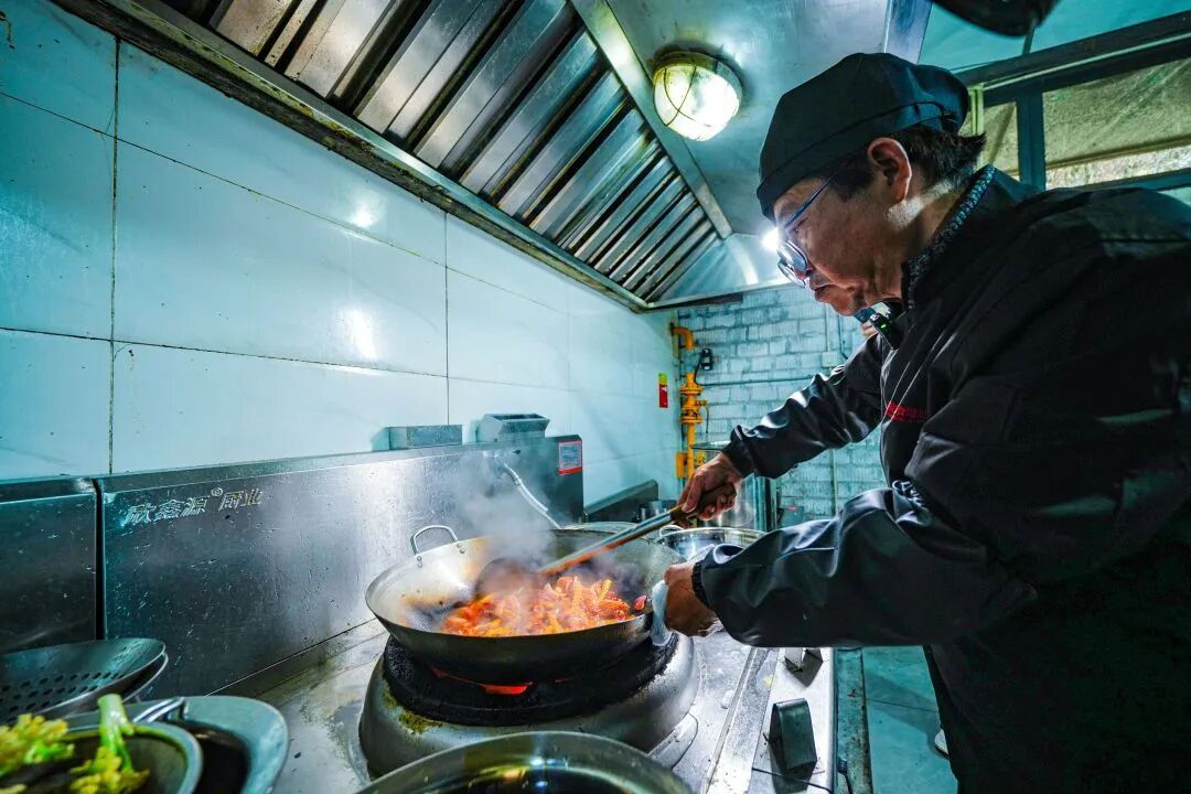 因为对美食的认真和执着,他以菜品总顾问的身份全程深度参与,从食材挑选、配方调试、火候控制到上桌呈现,每一步都严格把关。遇到特色菜品、招牌菜,更是由他掌勺,确保每一口都忠于传承、不失本味。