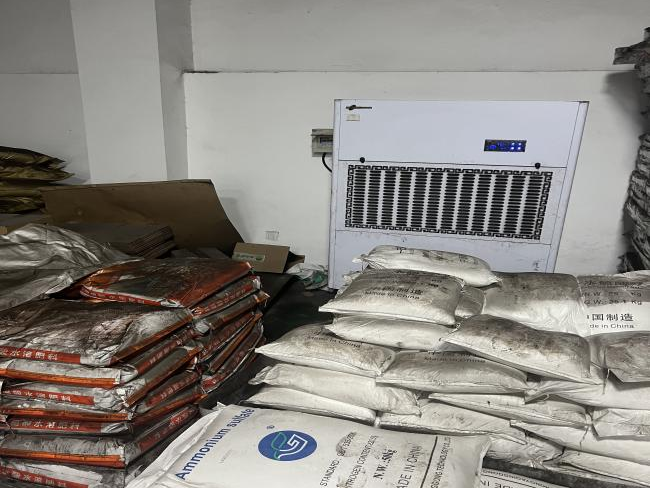 问题隐患:原料库物料堆放无垛距、无墙距