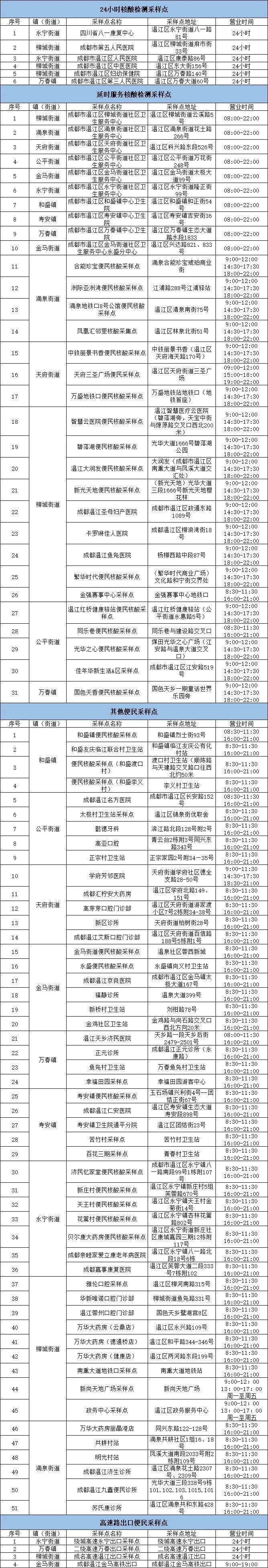 部分点位有调整!温江最新核酸检测采样点详情→