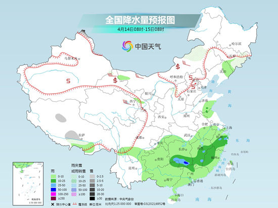 随着冷空气继续南下,今天降水范围将向南收缩,中央气象台预计,内蒙古东部、吉林东部、新疆北疆北部等地部分地区有小雪或雨夹雪,其中,新疆北疆北部局地大到暴雪。江南中南部、浙江中部、广西东北部、广东西北部等地部分地区有中到大雨,其中,湖南南部等地部分地区有暴雨。