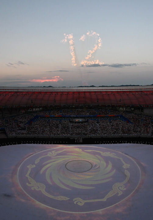 开幕式主导形象的“太阳神鸟”,等距分布着12道旋转的齿状金芒,因此倒计时就从“12”开始。新华社记者 贾浩成 摄
