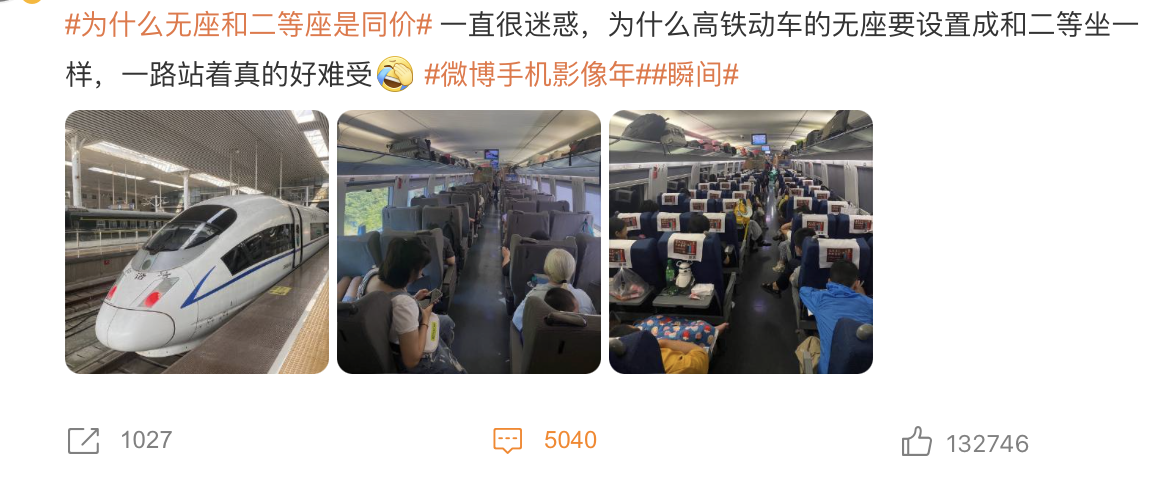 9月3日,“为什么无座和二等座是同价”冲上热搜,引网友热议。