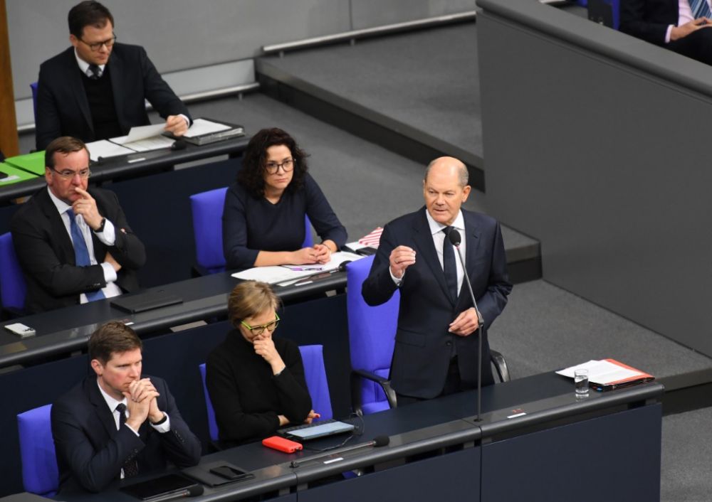 1月25日,德国总理朔尔茨(前排右一)在位于柏林的德国联邦议会接受问询。新华社记者任鹏飞摄