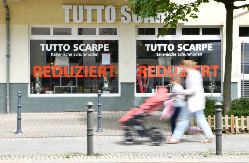 6月28日,行人经过德国柏林一家打折店铺。新华社记者任鹏飞摄