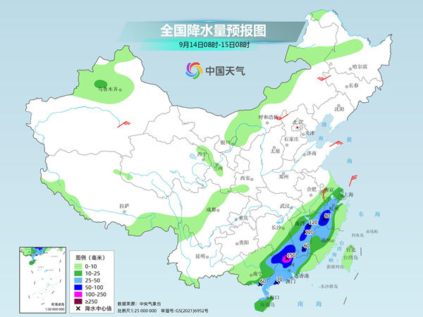 今天(9月14日),南方强降雨继续向南收缩,雨带将呈现出西南至东北的走向分布,暴雨或大暴雨主要集中在江西中南部、浙江中部、广东中部和西北部一带。与此同时,四川盆地、重庆、湖北、湖南一带,随着雨水退去最高气温将快速反弹至30℃以上。