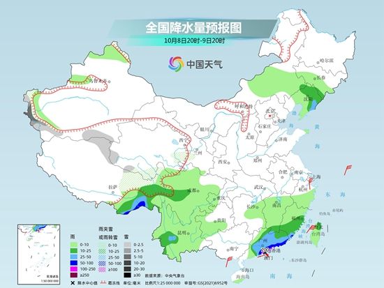 华南部分沿海有强风雨 川西高原等地局地有中雪