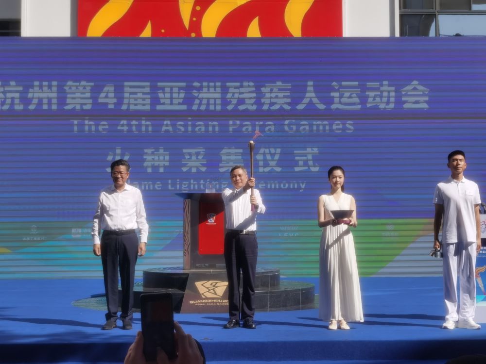 新华社广州10月12日电 12日上午,杭州第四届亚洲残疾人运动会火种在广州完成采集。