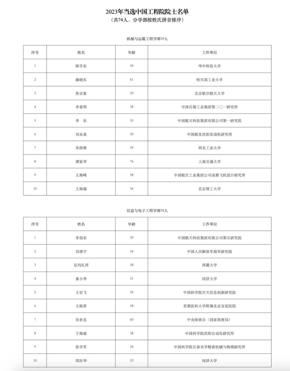 新华社北京11月22日电(记者张泉)中国科学院、中国工程院22日公布2023年院士增选结果,分别选举产生中国科学院院士59人,中国工程院院士74人。