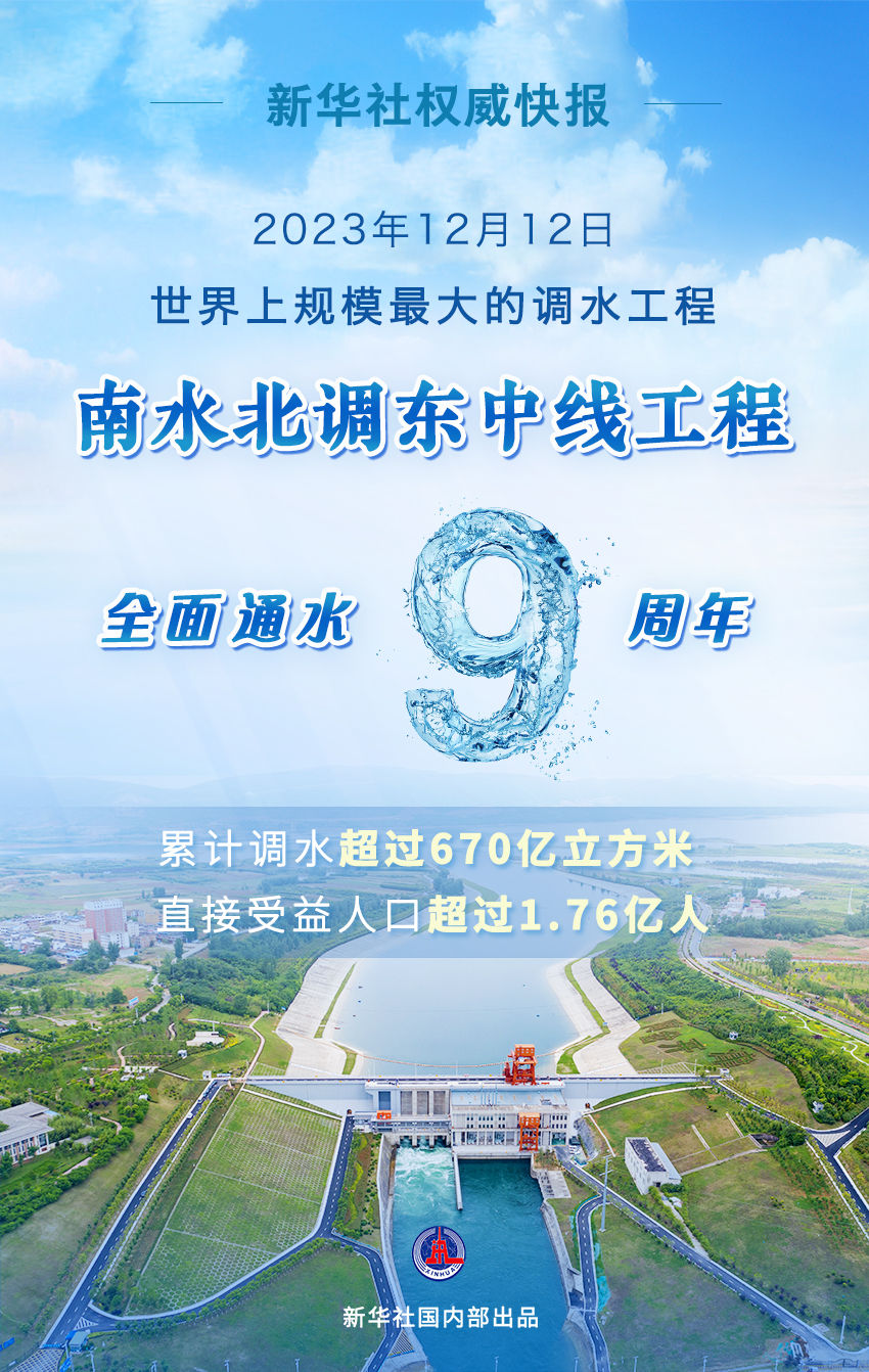 南水北调东中线工程全面通水9周年 累计调水超过670亿立方米