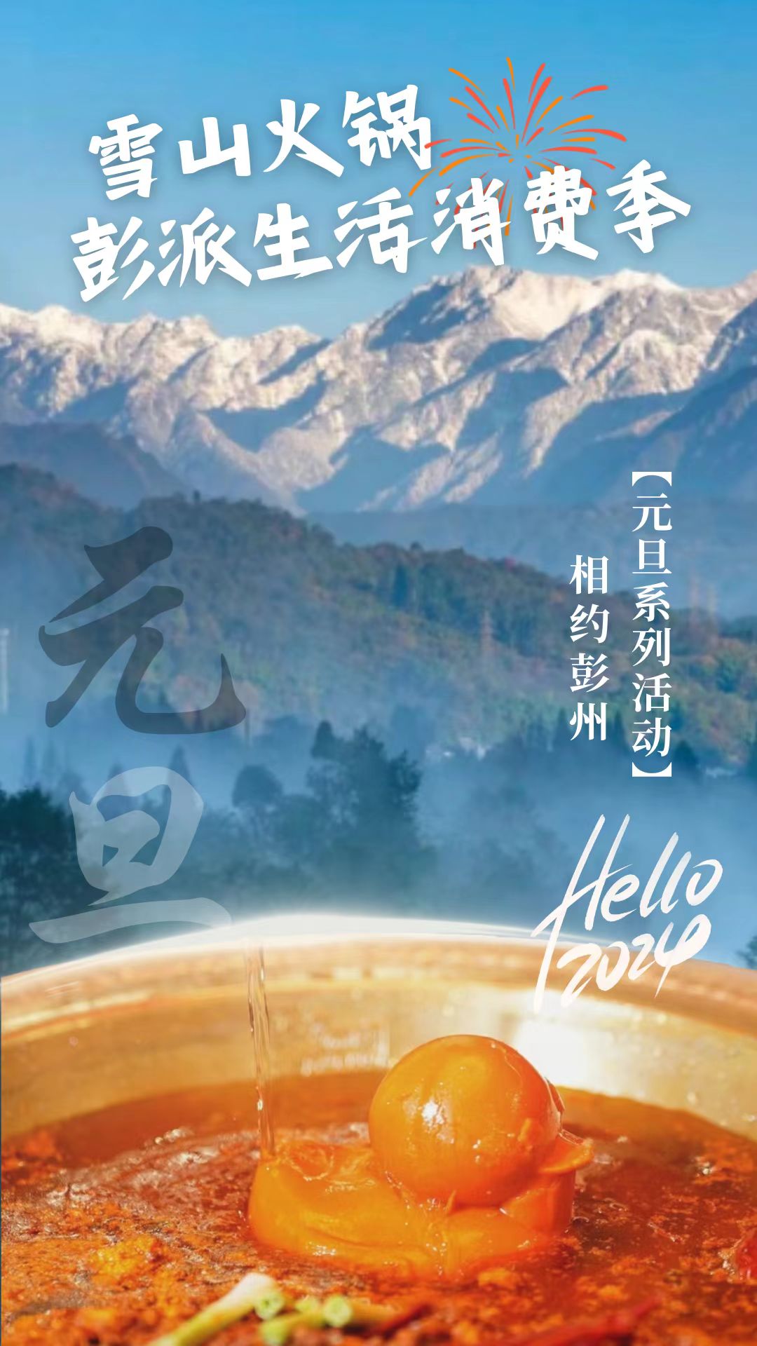 结合彭州一半山水一半城、遥望雪山的独特风貌,以秋冬时节最受欢迎的消费大单品—火锅为抓手,结合元旦、春节两大节日消费特点,联动全市好物好购、好住好客、好逛好耍、好嗨好游等吃、住、行、游、购、娱多元消费场景,开展系列跨年新春彭派特色促消费活动。