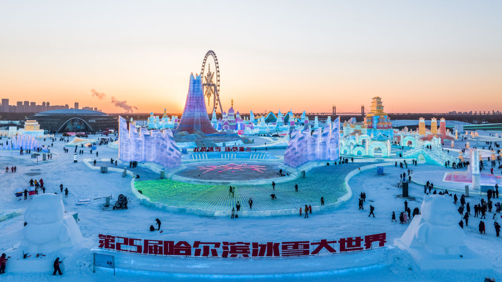 游客在哈尔滨冰雪大世界园区游玩 图据新华社