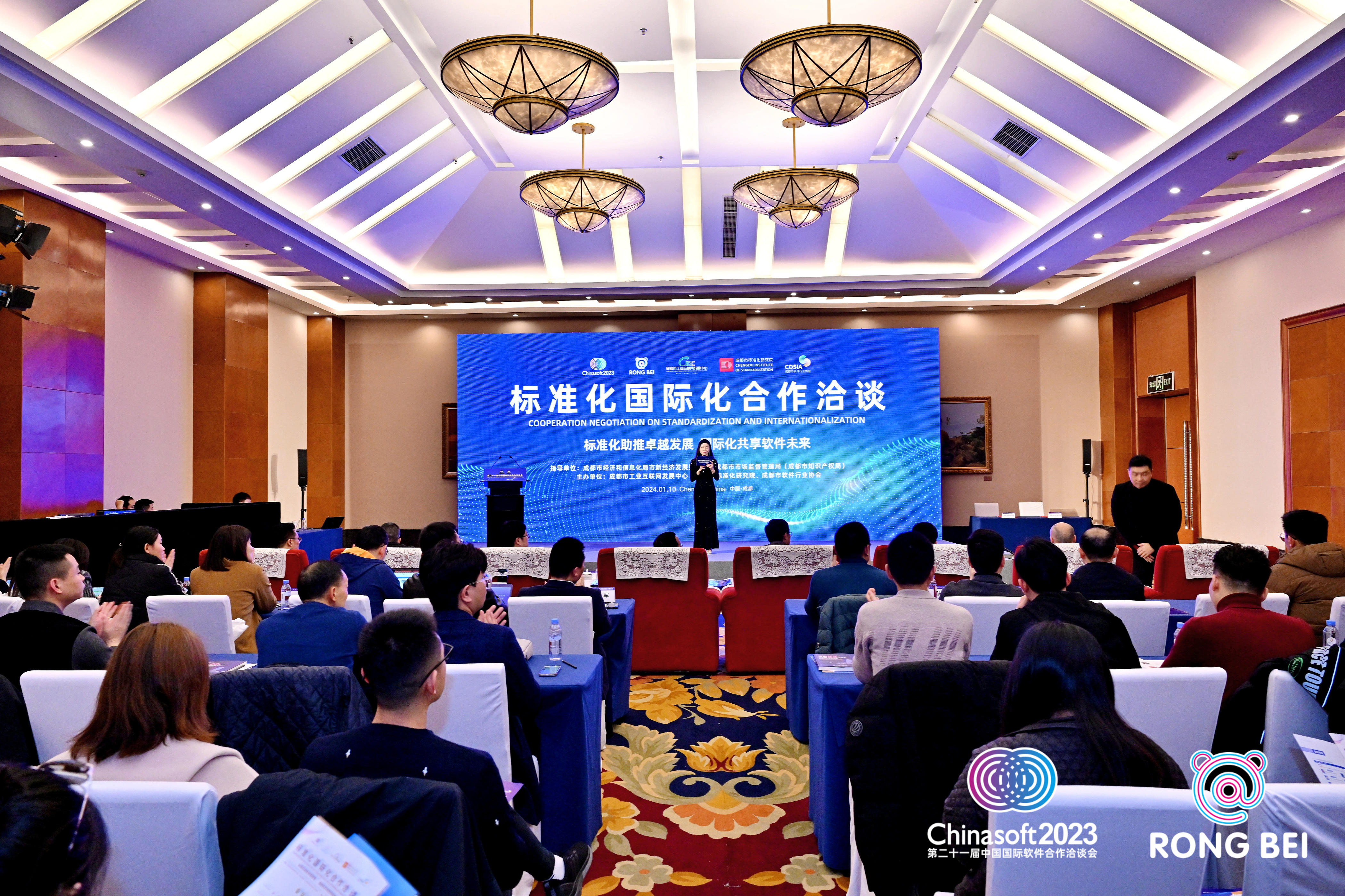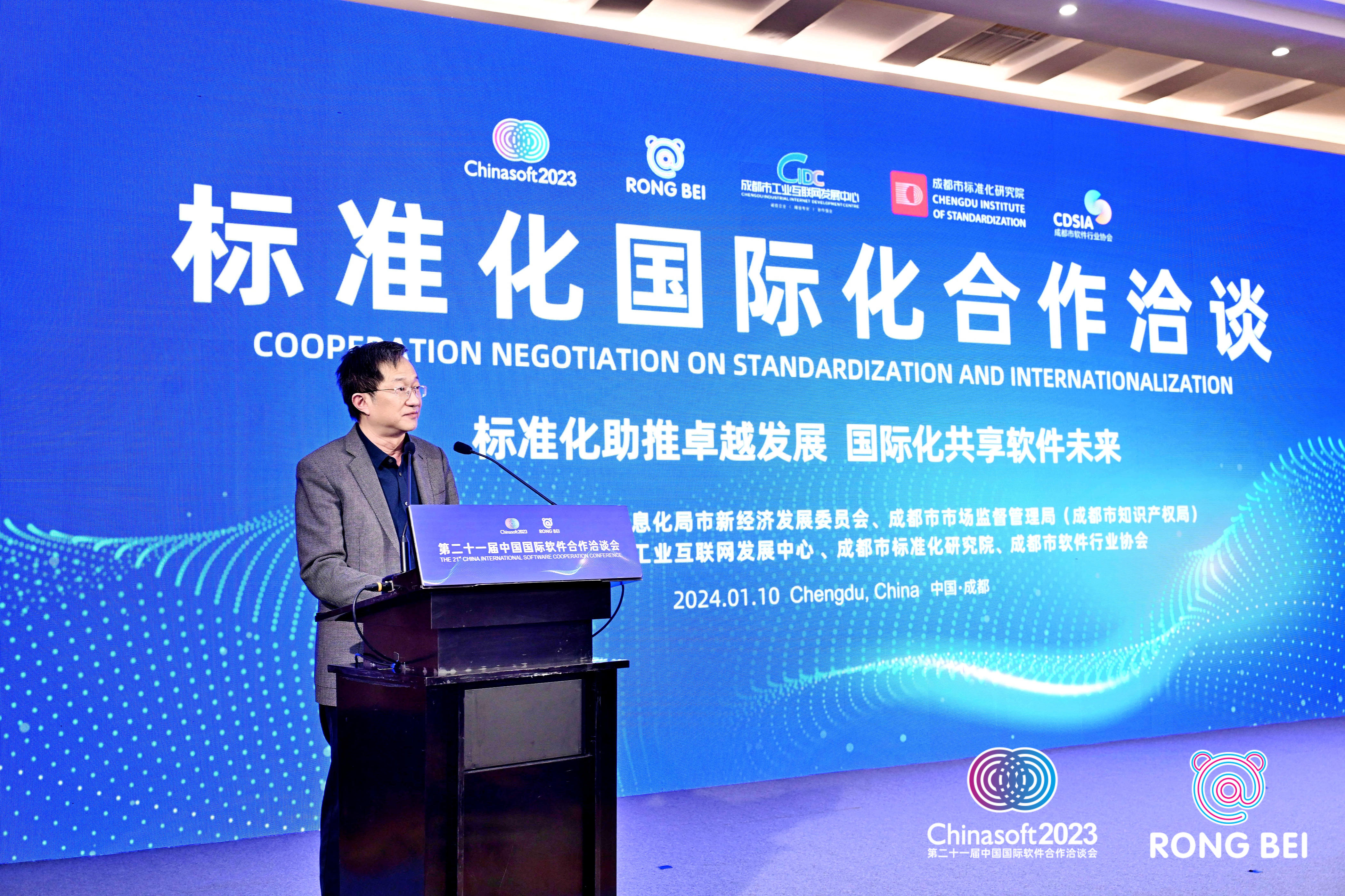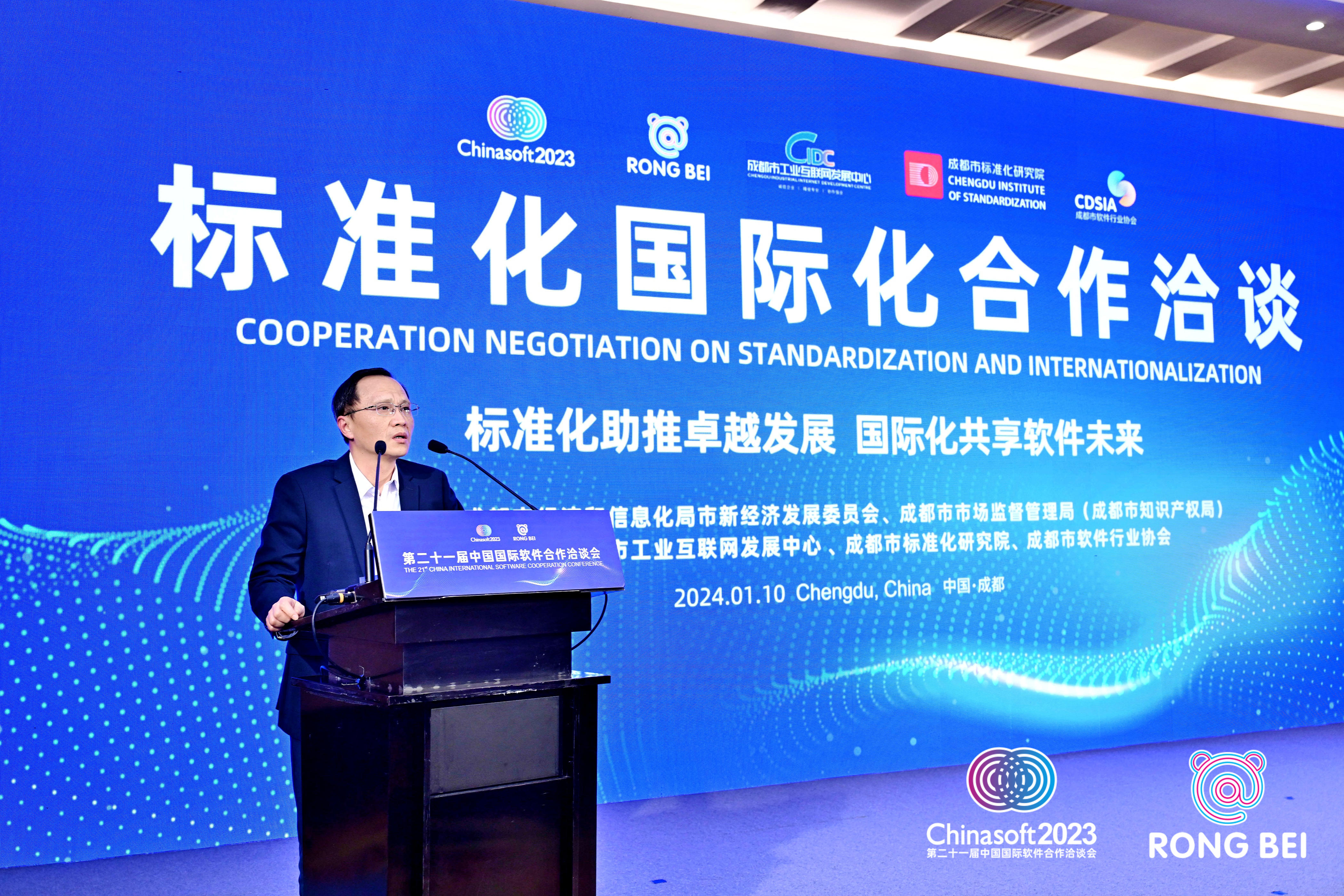 2024年1月10日,由成都市经信局市新经济委、成都市市场监管局共同指导,成都市工业互联网发展中心、成都市标准化研究院、成都市软件行业协会联合主办的“标准化国际化合作洽谈”会议在成都成功举办。