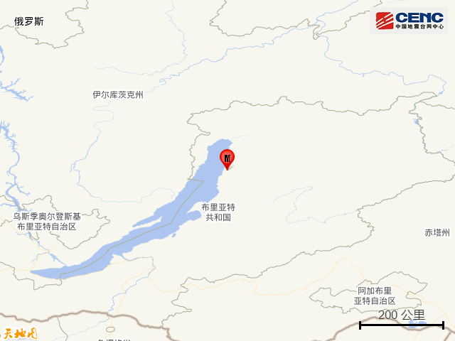据中国地震台网正式测定,北京时间1月15日20时52分(当地时间1月15日20时52分)在俄罗斯贝加尔湖地区发生5.2级地震,震源深度20公里,震中位于北纬54.80度,东经109.80度。