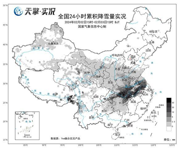 3日晚上到4日中午,湖北、安徽等地还有强降雪。预计2月3日20时至4日20时,河南南部、湖北大部、安徽中北部、江苏西部、湖南北部、重庆东部、贵州东北部等地的部分地区有大到暴雪,其中,湖北东北部、安徽中部等地的部分地区有大暴雪(20~24毫米)。上述地区新增积雪深度3~10厘米,局地可达20厘米左右。