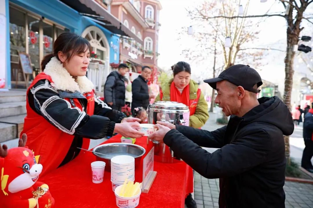 此外,白鹿镇新时代文明实践所联合鹿长服务站也为外来游客、当地居民、入驻商家等提供了暖心服务,如免费热水、暖心雨伞等。每天早上9点至10点还开展吃汤圆、品白茶、送祝福等活动,让游客和当地居民共同感受喜庆祥和的新春氛围。