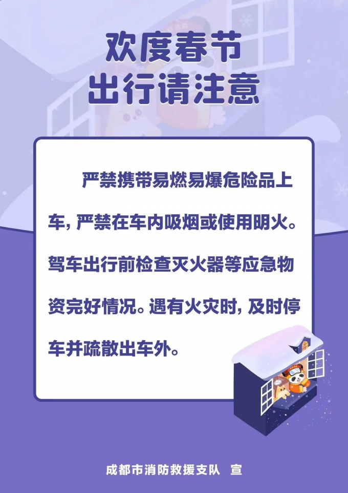 春节假期,低温天气即将来袭,市民不管是出门在外,还是在家用火、用电、用气,都要格外注意安全,这些注意事项务必牢记!请查收这份春节安全提示:
