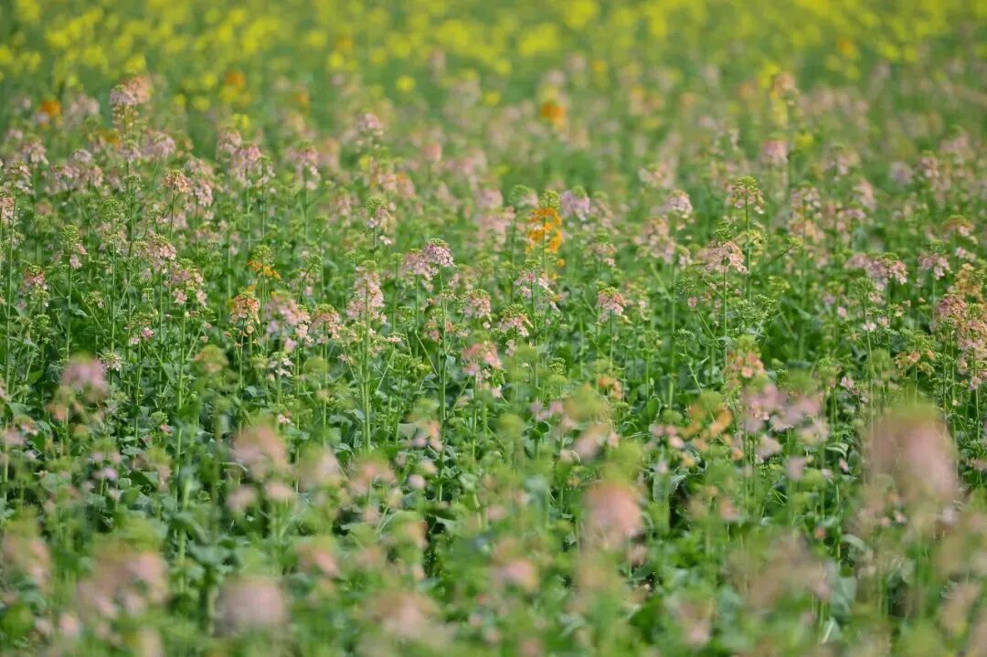 早在去年12月底,这里的部分油菜花就已经开放了,目前,深粉、纯白、桃红、橘黄等彩色油菜花更是开得热烈。
