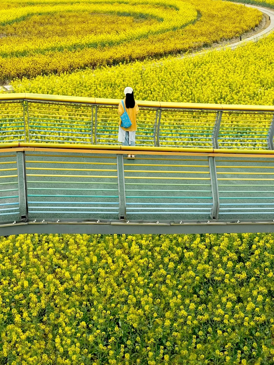 这里的油菜花相较于其他地方更大更多,并且更有层次感!行走在油菜花上的旋转走廊,俯瞰油菜花田,高低起伏,一望无垠,好看极了!
