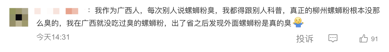 来自广西的网友则现身说法,表示广西的螺蛳粉其实不臭,不知道怎么出了广西就变臭了。