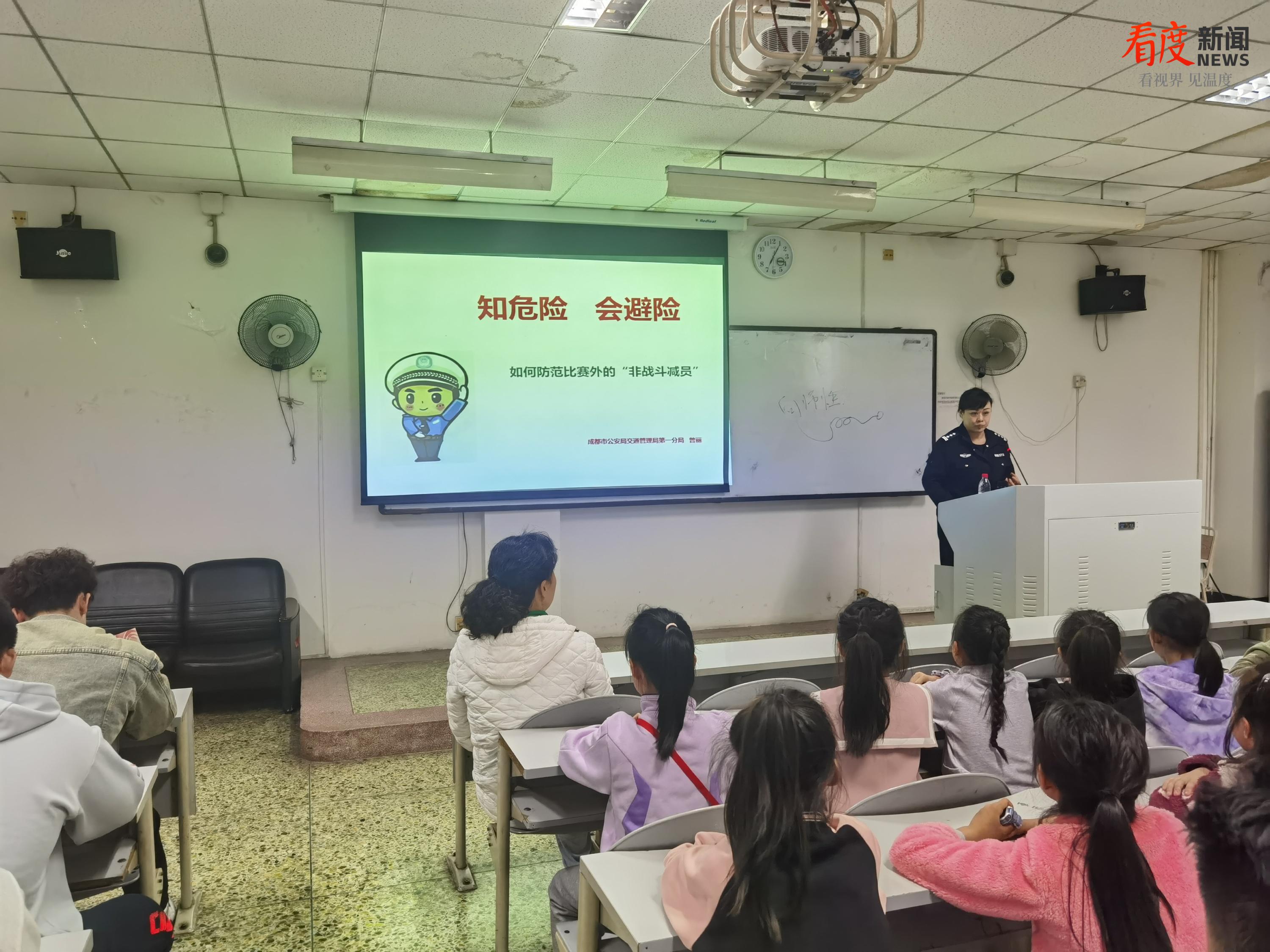 在第29个“全国中小学生安全教育日”来临之际,为切实加强辖区学生“知危险 会避险”交通安全意识和自我保护能力,2024年3月24日,成都交警一分局车管科民警来到成都体育学院竞技体校,为8至24岁的学生运动员们带来一堂精彩生动的“知危险 会避险”交通安全主题课。
