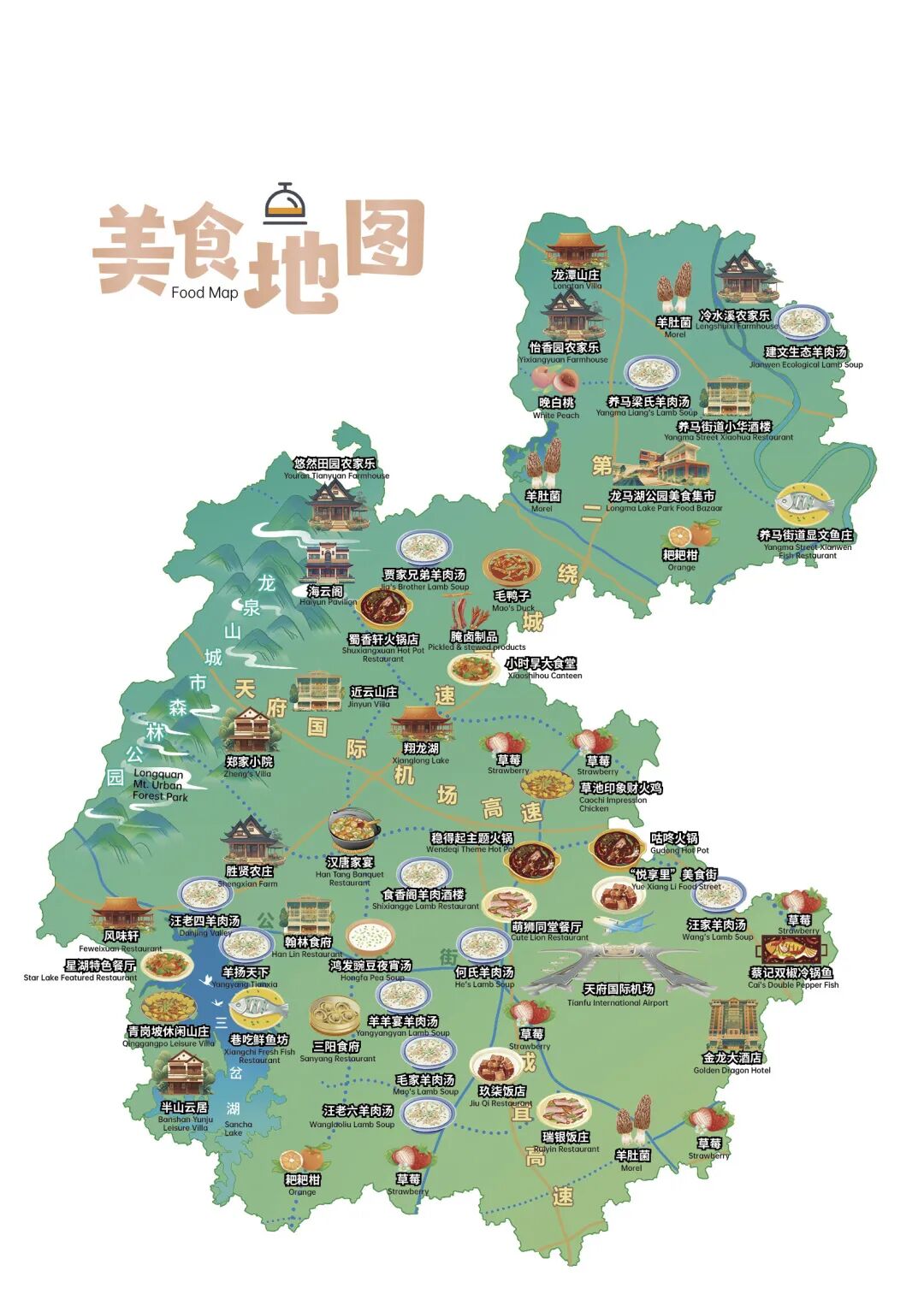 下面这张美食地图,收录了成都东部新区各个镇(街道)的特色美食店铺,涵盖不同品类,多样风味。拿着这张美食地图,一路游玩、一路吃喝,来感受属于东部新区的“松弛感”吧~