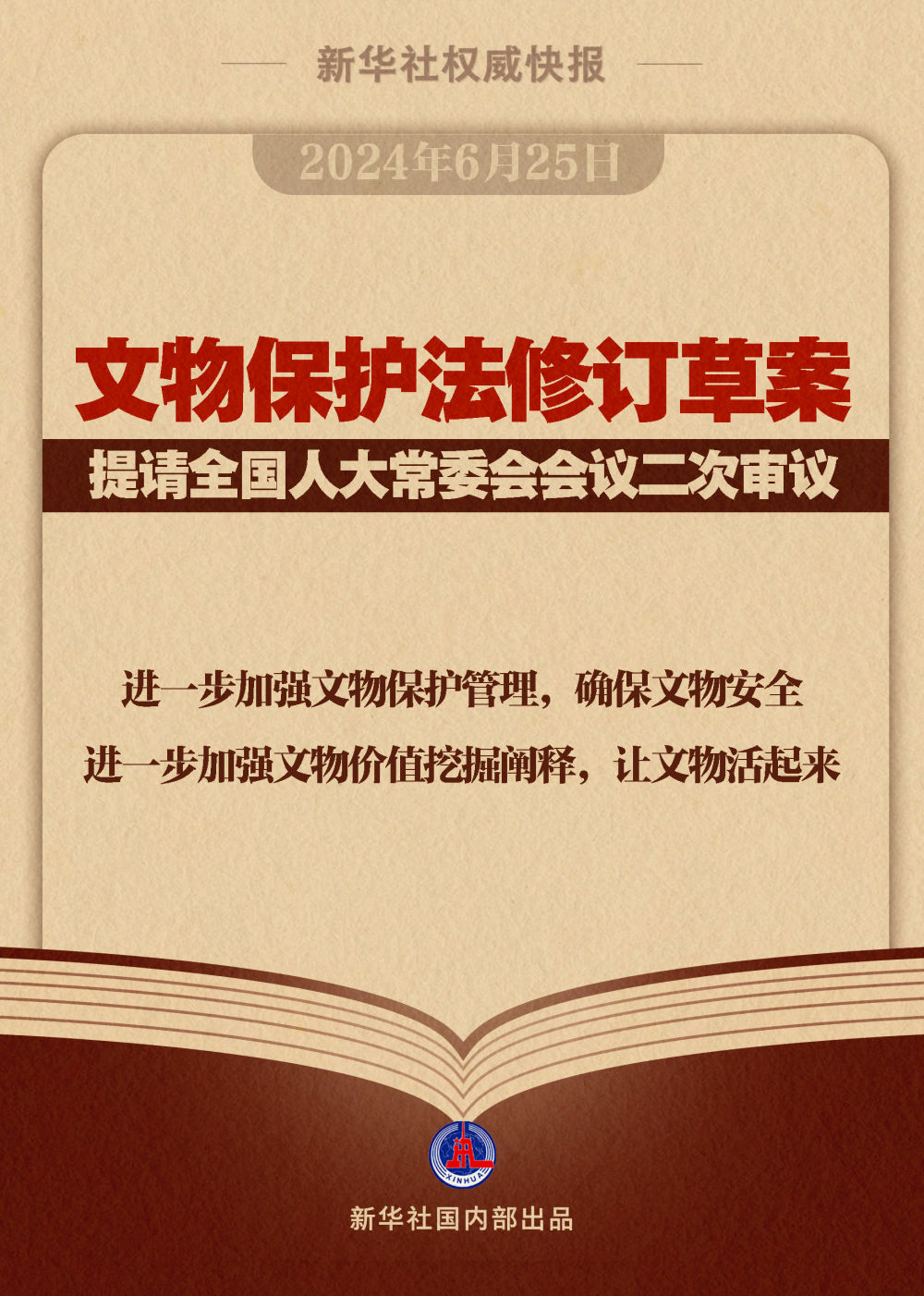 文物保护法修订草案6月25日提请全国人大常委会会议二次审议。