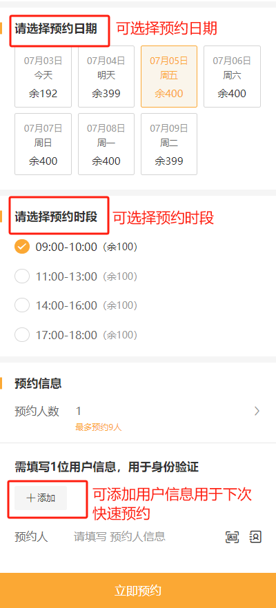 3.填写预约所需信息后,将会发送预约短信至您填写的手机号码,也可以在当前页直接查看预约信息。