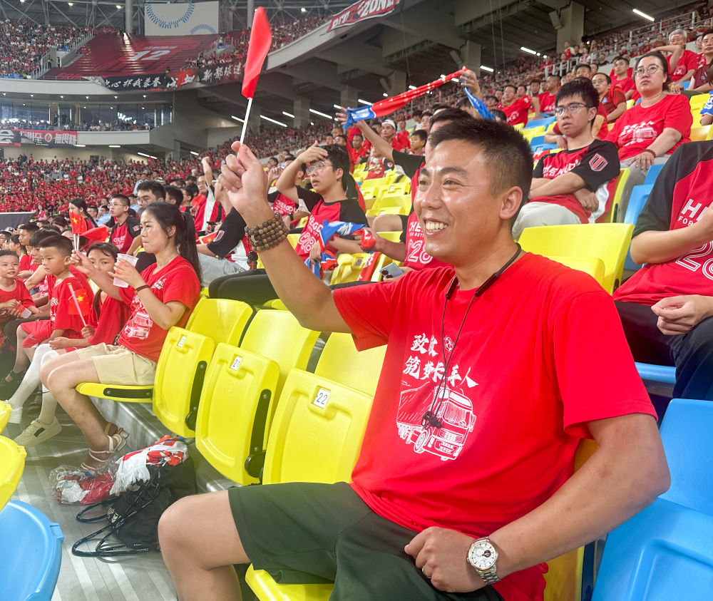 “但其实,我到过这里很多次。”徐宝林顿了顿,“前几年这个球场建设的时候,我曾多次为这里运送过砂石和钢筋,只是从没有机会走进来。今天进来,真的感觉这里太牛了!氛围太棒了!”徐宝林竖着大拇指有些激动,“真的很感激能给我们卡车司机这样一个机会,和家人一起,出来‘见见世面’。”