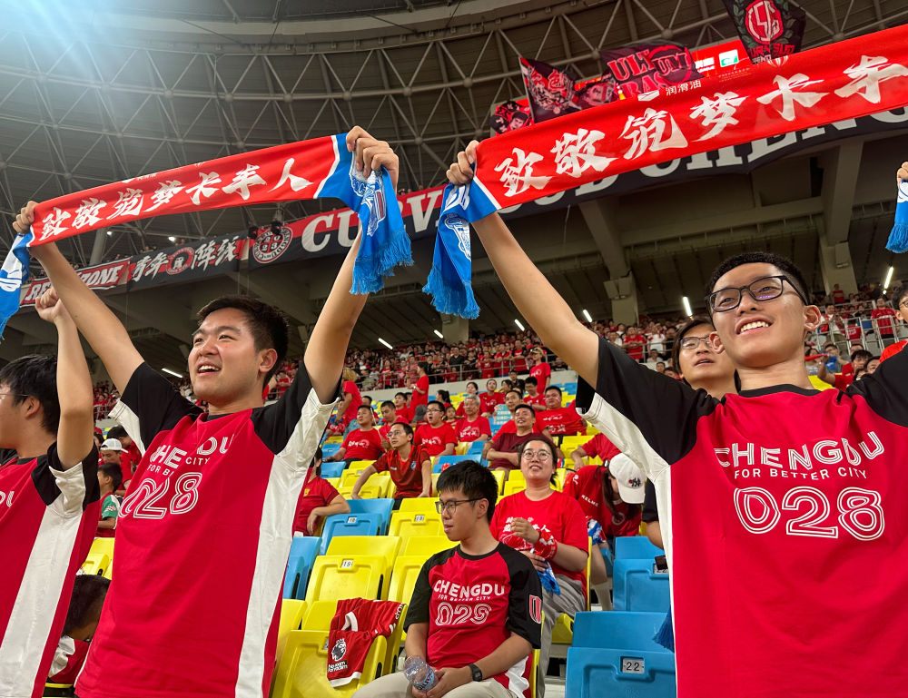 徐晗文是当晚受邀的中科大少年班23位同学之一,作为学校的足球协会主席,他一直拿着手机录像,“我就想全都记录下来,哎,可惜最后没电了。”徐晗文笑着说,“我第一次到专业的足球场看球,很激动,而且到了现场才发现职业球员对比赛那种认真的态度,每球必争的竞技精神很感染我。”随着成都蓉城队打入制胜一球,徐晗文和同学们激动地跳着大声呐喊。“这里主场氛围真的太好了,虽然过去不是成都球迷,但看过一场感觉自己就自然变成主队球迷了呢!”