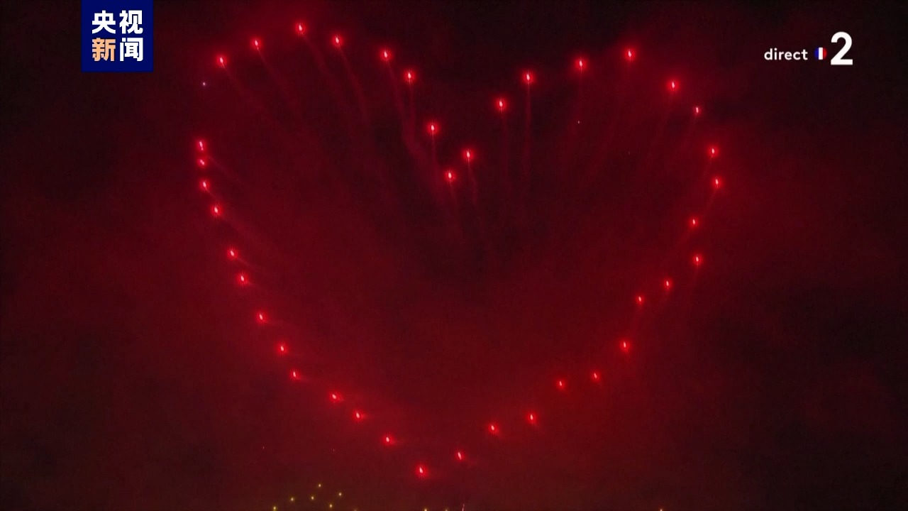 当地时间14日晚,一场绚丽的无人机和烟花表演在巴黎上演,奥运五环、巴黎奥运会会徽、火炬手等“奥运元素”成为这场光影秀的“主角”。