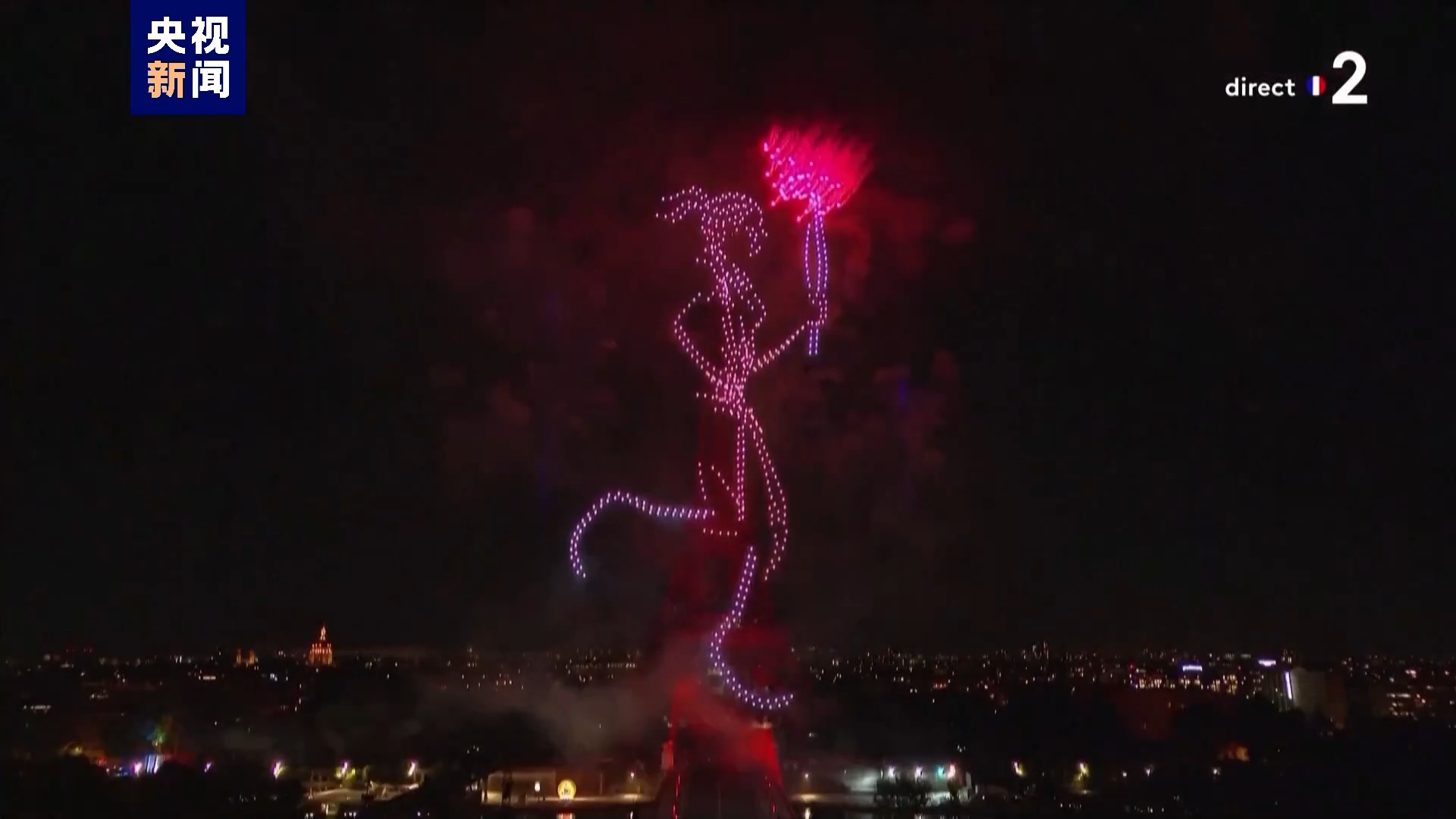奥运会火种抵达 巴黎上演无人机、烟花表演