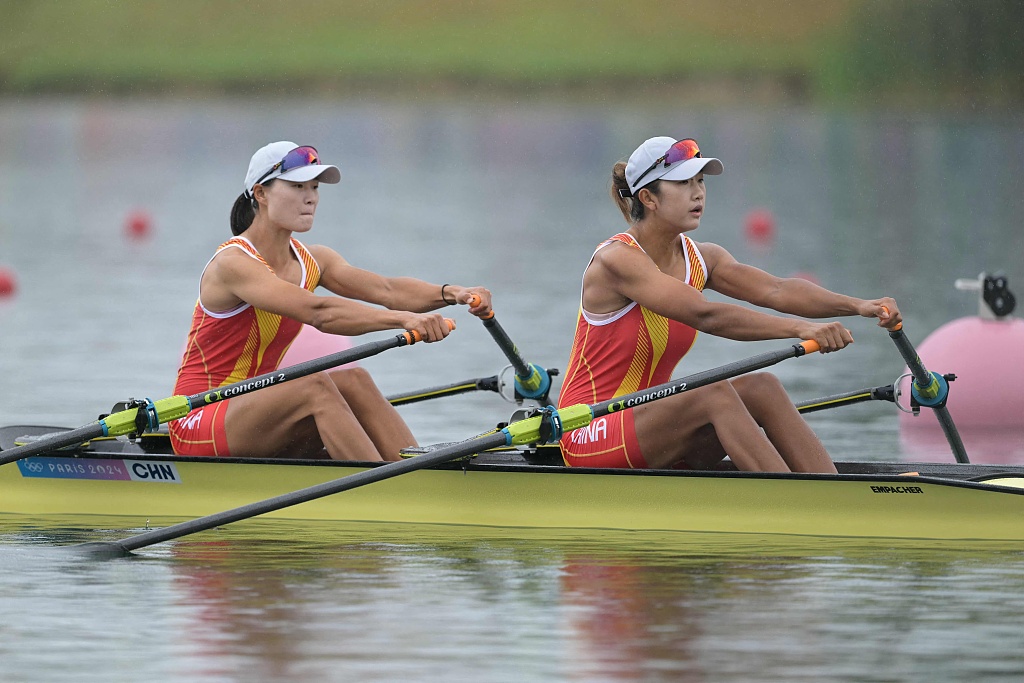 7月27日上午,奥运会赛艇项目首日角逐,中国女子双人双桨组合鲁诗雨/沈双美晋级半决赛。