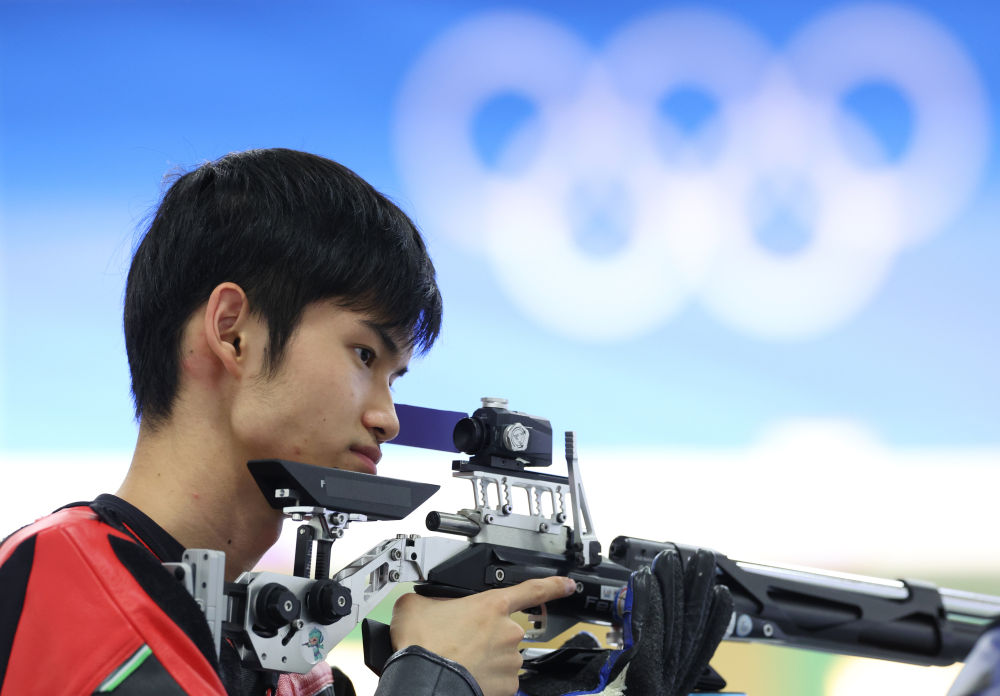 7月28日,中国选手盛李豪在男子10米气步枪资格赛中。新华社记者 赵丁喆 摄