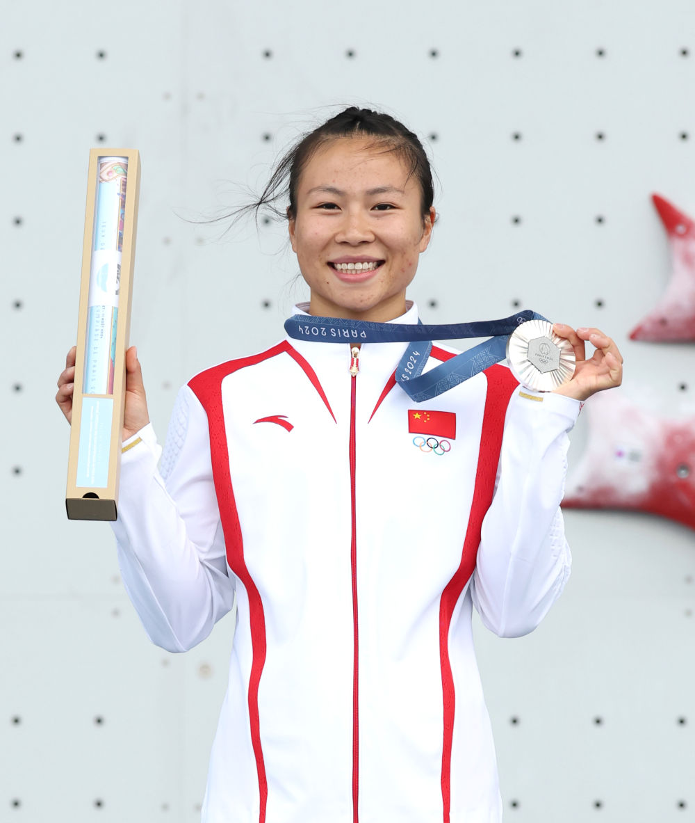 8月7日,在巴黎奥运会攀岩女子速度赛比赛中,中国选手邓丽娟获得银牌。
