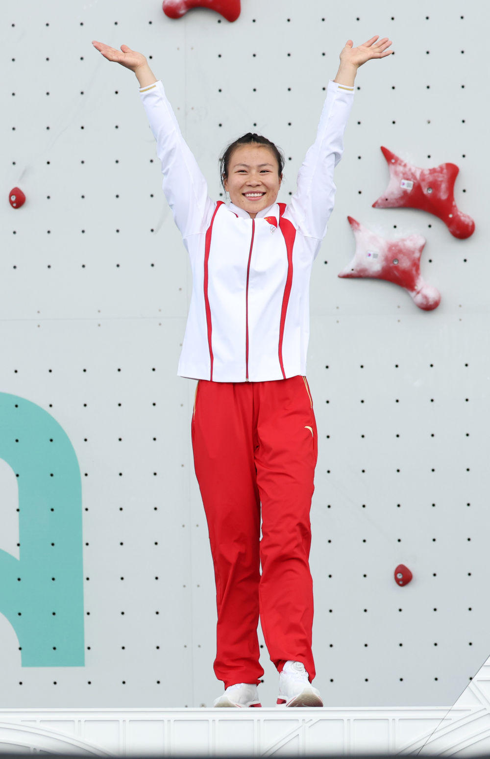 邓丽娟获得攀岩女子速度赛银牌