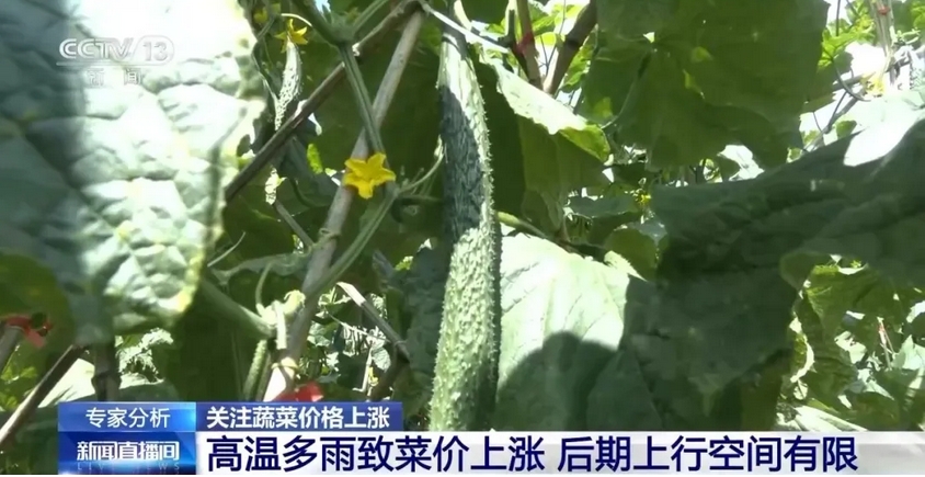 据农业农村部重点监测显示,7月份,28种蔬菜的全国平均批发价每公斤为4.79元,环比上涨9.6%,同比跌2.0%,较近三年同期平均高5.1%。其中,黄瓜(涨69.4%)、大葱(涨45.5%)、菠菜(涨34.7%)、菜花(涨30.6%)涨幅超30%。