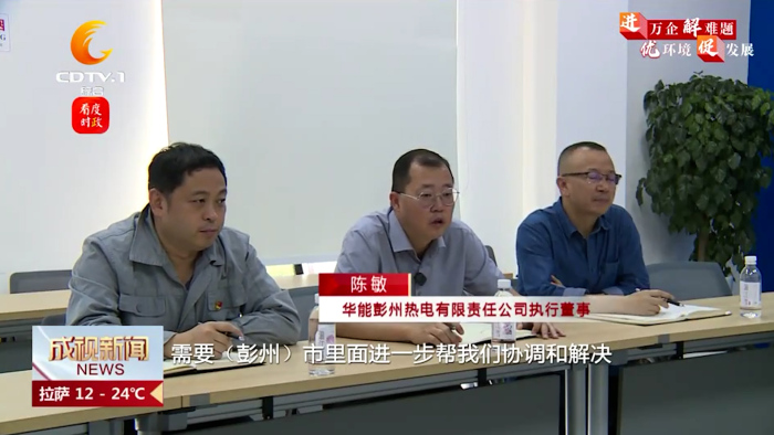 华能彭州热电有限责任公司执行董事 陈敏:当前我们主要是遇到两个困难,需要彭州市里面进一步帮我们协调和解决。第一个就是我们园区的污水处理厂,这一块和我们电厂投产时序还有些不匹配,希望彭州市帮助我们加快整个园区污水处理厂的建设。下一步我们要对现有的彭州输气站进行改扩建,需要办理征地等前期手续。